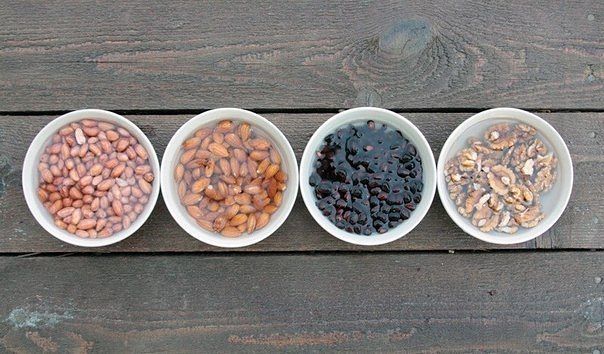 При замачивании значительно возрастает питательная ценность орехов и семян. Также меняется вкус, они становятся сочными, сладковатыми и практически ничем не уступают своему свежему аналогу. К тому же, если есть сомнения, не обработан ли продукт, замачивание — верный способ это проверить. Испорченное или жареное семя в процессе замочки протухнет, будет мягким и кардинально другого цвета, чем живые орешки и семечки. Как замачивать.