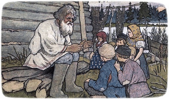 В ведические времена был прекрасный способ передачи мудрости, это сказание сказок. Само слово «сказка» говорит о том, что это не писаные знания, а рассказы, передаваемые устно сказителем. Знаний в сказках не так много, но в них передавался настрой, дух, стремление героев.