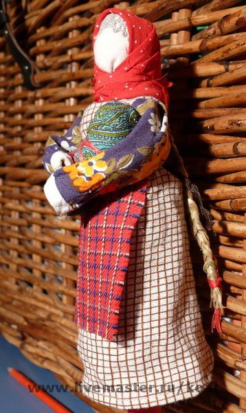 Украсить куклу также можно оберегом из ниток, мешочком из трав с пожеланиями или просто украшением, собственноручно-сделанным…