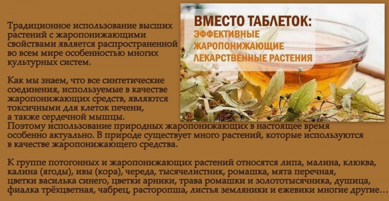 Как мы знаем, что все синтетические соединения, используемые в качестве жаропонижающих средств, являются токсичными для клеток печени, а также сердечной мышцы. Поэтому использование природных жаропонижающих в настоящее время особенно актуально.