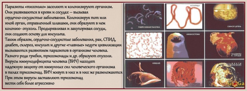 С паразитами безполезно просто бороться! Надо знать причину их пребывания в нас! Надо стать «невкусным» для паразитов, «неудобоворимым» для них! А это, в первую очередь, перестать самому быть паразитом и относиться к себе (своему телу) не как к помойке. Задумайтесь, ведь большинство людей относятся к окружающему нас Миру паразитически…