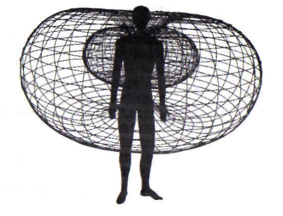 Рис. 1. На иллюстрации показана форма и приблизительный размер энергетического поля вокруг человеческого сердца. (С любезного разрешения Института математики сердца.)