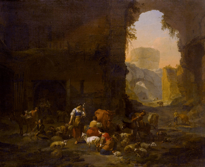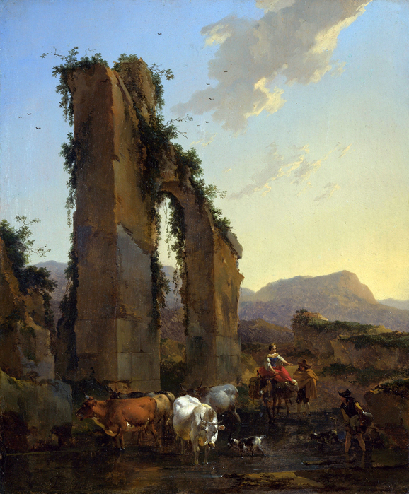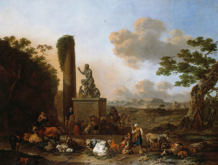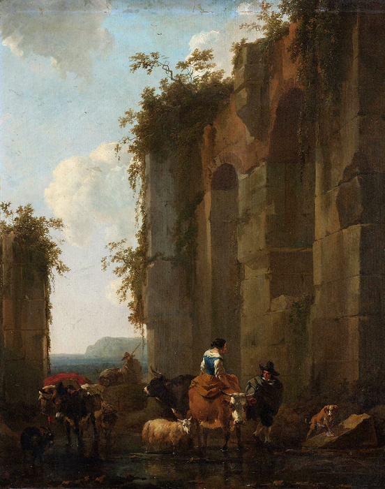 Этот мастер (Nicolaes Pieterszoon Berchem), написал достаточно много пейзажей, на которых главными персонажами, несомненно, являются руины. Я назвал его Николаем Петровичем Медведевым, и это не совсем шутка, как многие понимают.