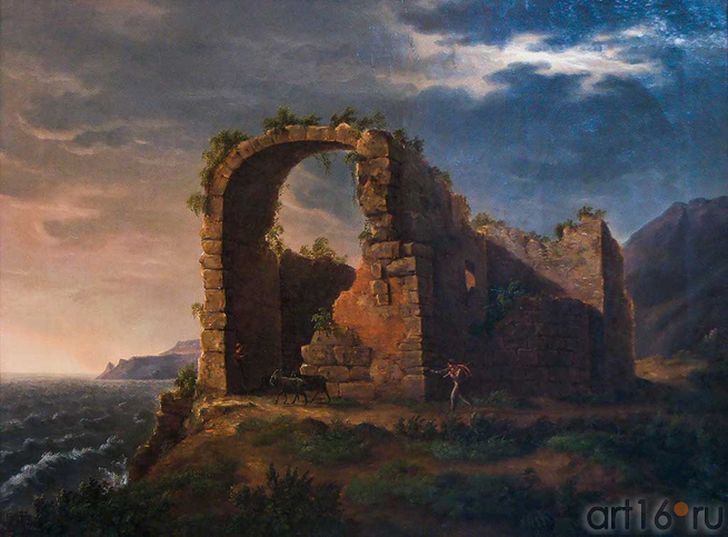 Ну ладно, вернёмся к нашим баранам. А так же к быкам, овцам и козам, на фоне «античных» руин. Это тоже «тренд». Такой же как пастухи и прачки, на пейзажах тех лет. А коснулось ли это «течение» России? Не сомневайтесь. Хоть память о русских руинах тщательно затиралась в 19 и даже в 20 веке, но кое-что всё же сохранилось. Покажу только два произведения, которые не показывал раньше: