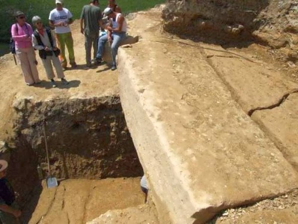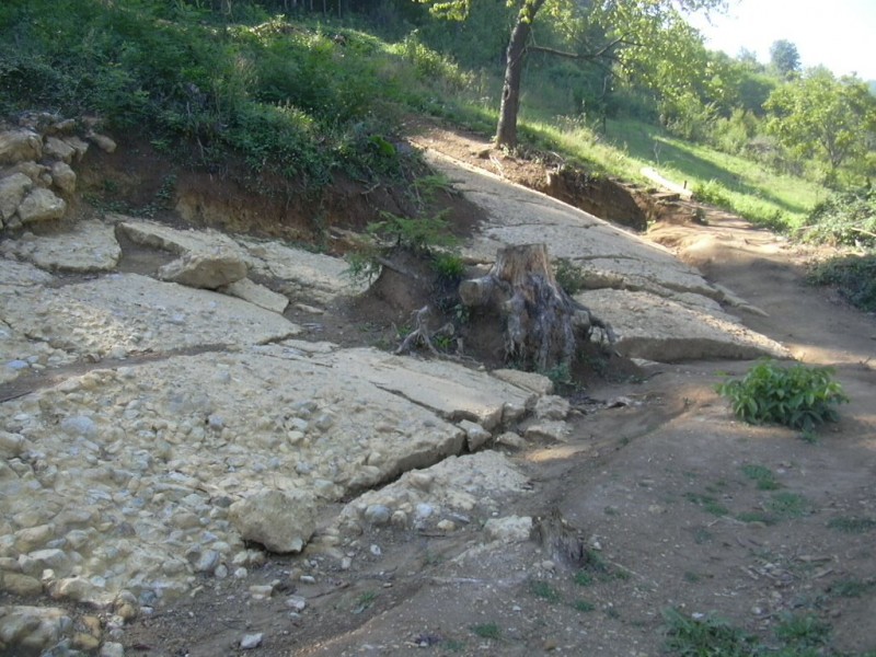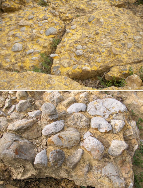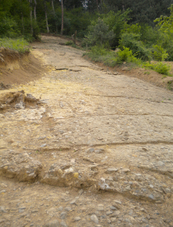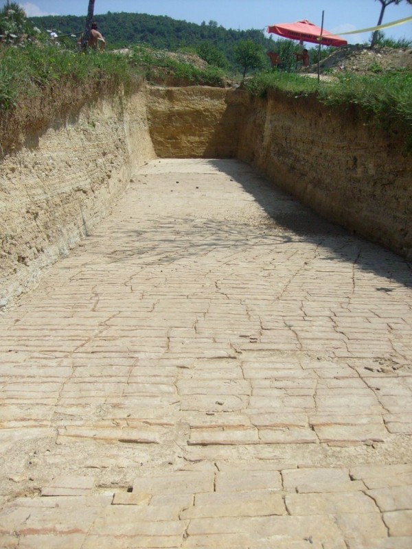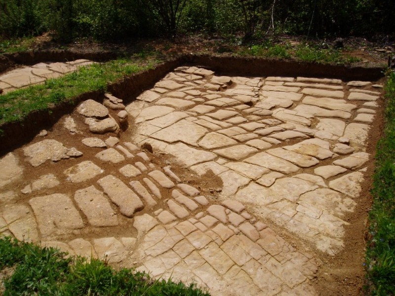 Когда было можно, были произведены раскопки. Под слоями глины (ох, уж эта глина) были обнаружены плиты, выполненные по бетонной технологии с наполнителем из галечника