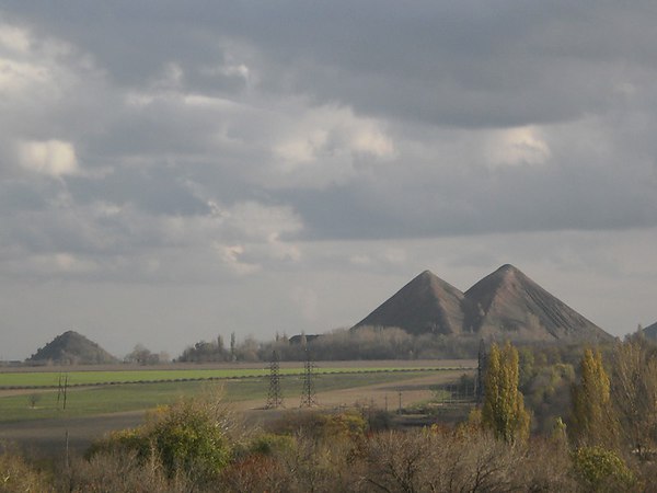 Терриконы на Донбассе. Если бы не экономия места, то это были бы две пирамиды.
