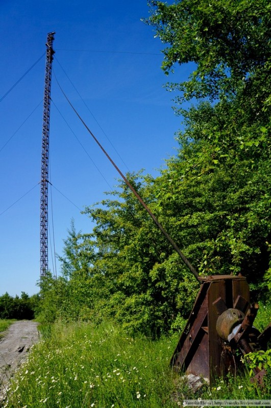 Ставилась мачта и к ней поднимались ковши. Эта — на шахте «Заречная» в с. Силец (Сокальський район, Львовская область, Украина).