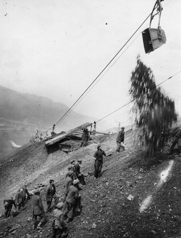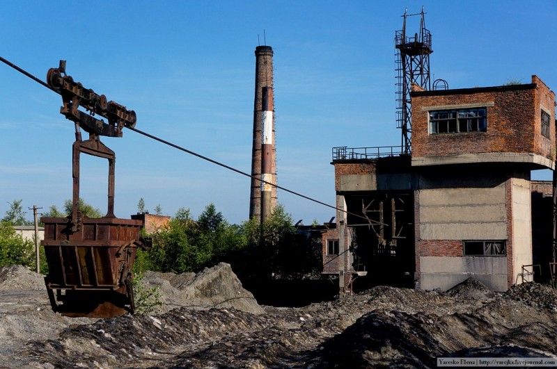 Современная заброшенная канатная дорога для насыпания терриконов, а именно: грузовая подвесная канатная дорога; отвальная, маятниковая, однопутная, однопролетная, двухканатная.