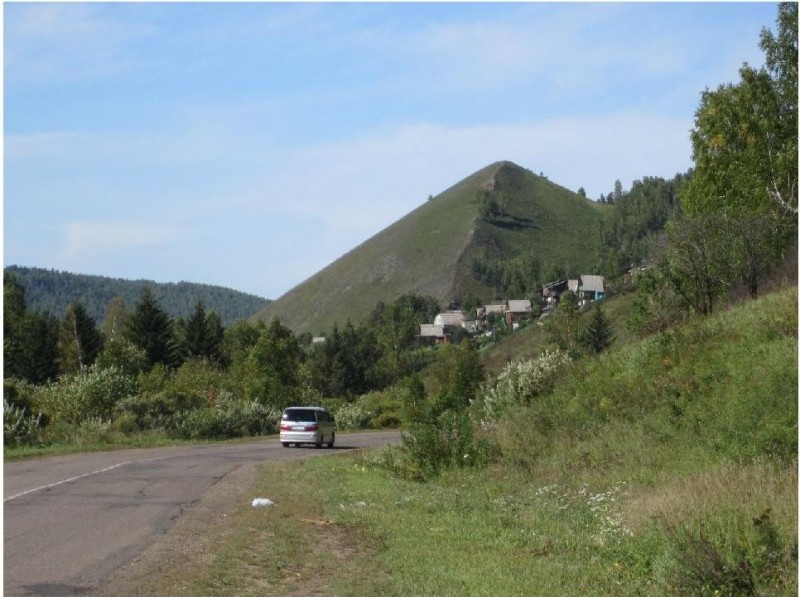 Это пирамидальная гора около п.Зыково в нескольких километрах от Красноярска