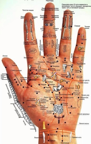 Стимулируя любым способом (тепло, надавливание, эфирные масла) эти точки, вы стимулируете работу внутренних органов.