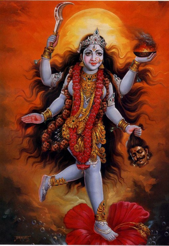 «Ты — та, у которой распущенные волосы. Ты — олицетворенная смерть. Ты любишь подношения в виде спиртных напитков и мяса. Ты — Лакшми, богиня удачи, которая в виде Алакшми (неудачи) уничтожает демонов».