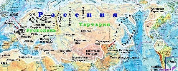 Святая Земля Родов Расы Великой на своей территории имела следующие названия. Более общее название от Рипейских гор до Тихого океана была Асия (Азия). На Севере, в нижнем течении Оби, между Обью и Уральскими горами находилась Сибирь. Южнее, по берегам Иртыша располагалось Беловодье. Восточнее Сибири, по другую сторону Оби находилось Лукоморье. Южнее Лукоморья располагается Югорье, которое доходило до Ирийских гор (Монгольского Алтая). Обская губа – это Скифское море. Всё это находилось под покровительством Богини Тары.