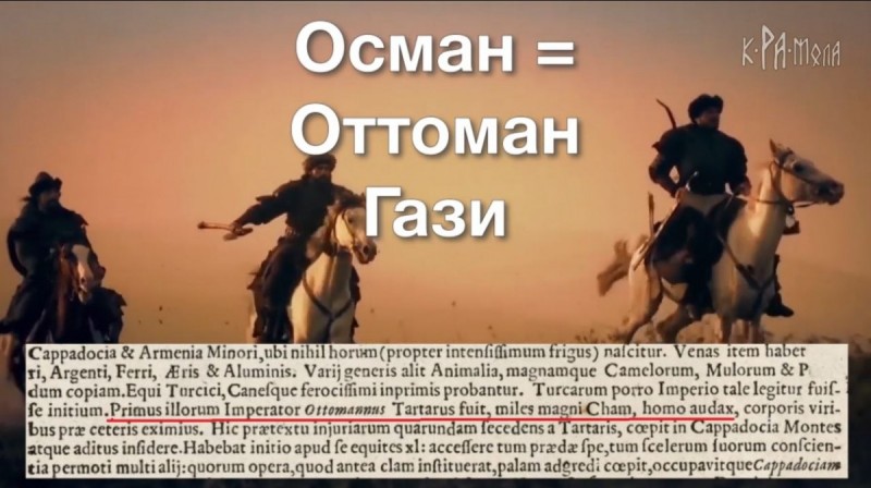 Теперь кто такие османы. В описании к карте Османской империи, изданной в XVII-м веке, сказано, что Осман, или Оттоман Гази, был военным человеком при Великом Хане татар. Получается, что Осман, тюркский вояка с татарским паспортом, решил сделать себе карьеру правителя в соседних землях. Не исключено, что “ОТТОман” — это вообще должность — атаман — военный человек скифов-татар.