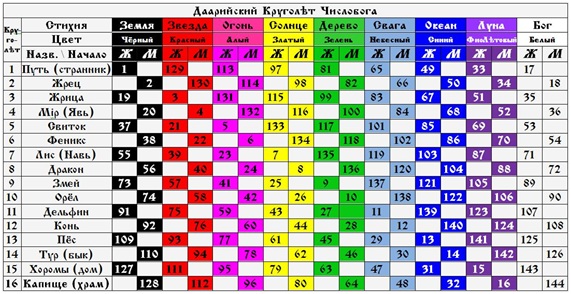 — 16 названий Летъ, т.е. названия года, и 16-ое Лето желательно выделять другим цветом. А в восточной системе 12 Лет, потому что она 12-тиричная, а у нас 16-ти ричная.