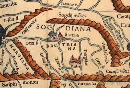 На территории Согдиана показаны два города: Александрия и Бактра: