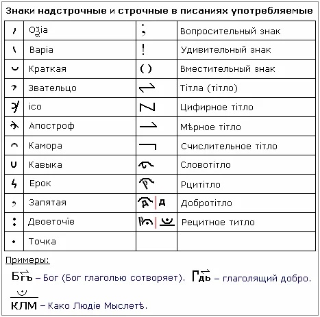 Знаки надстрочные и строчные в писаниях употребляемые.