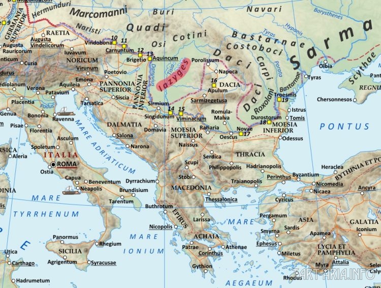 Т.е. ранее эти территории еще входили в состав Сарматии. Затем какие-то области отделились, стали самостоятельными государствами, но они все еще оставались славянскими. Но уже входящими в состав Римской империи? Далматия (иллирийцы), Моесия (тоже иллирийцы), Дакия, Македония, Фракия -это все славянские государства. Еще о языгах: