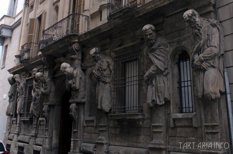 Перевод: Скульптурный образ сармата (языг будет похож), Каза дельи Оминони. Casa degli Omenoni – это дворец в Милане, построенный около 1565 года. Своим именем он обязан восьми атлантам, вернее, великанам украшающих его фасад. «Оmenoni» — большие (великие) люди на миланском диалекте. Почему-то они изобразили в качестве великанов сарматов. Вот так выглядят все 8 сарматов-великанов (вели-канов — великих ханов?):