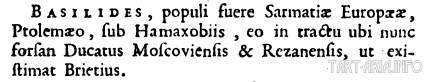 «Басилиды – народность Сарматии европейской по Птолемею, под хамаксобиями, на территории, где сейчас располагаются Московское и Рязанское княжества, по мнению Брита»