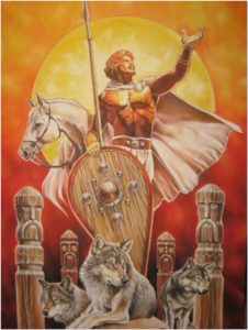 СВАРОГ — Бог огня, кузнечного дела, семейного очага. Небесный кузнец и великий воин. Сварог — бог-творец и законодатель, ИМЯ БОГА: Само имя бога связы вают с санскритским «свар» — Небо, а так же Свет. Сварог — кузнец. Он кует в небесной кузнице и потому его связывают с огнем. Сварог был хозяином и хранителем священного огня и его творцом. Сварог так же считается отцом Семаргла — бога Огня, а так же всех своих воинов Ратичей.