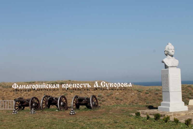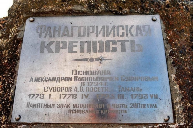 Здесь, согласно утверждениям историков, Александр Васильевич Суворов (кто же ещё, ведь Тотлебен тогда ещё не родился) основал Фанагорийскую крепость. Причём… Спустя 38 лет после смерти картографа, который при жизни её уже обозначил как действующую, под названием Тамань.