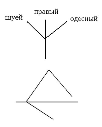 «Непонятная многим фраза «правый путь». Т.е всё привыкли слышать: «Пойти налево», а здесь – направо. Так вот раньше правый означал прямой путь. Т.е правый значить править. Заметьте, в Болгарии есть – лево, т.е. пойти налево, прямо – это право, а то, что мы в современном языке называем право, называется одесно. Но раньше было как? По направлениям, помните, развилка трех дорог? Дошел человек до камня и вот три дороги идут прямой путь будет — правый, направо – одесный, налево — шуей. И заметьте, река, Шуя и Десна, левая и правая.