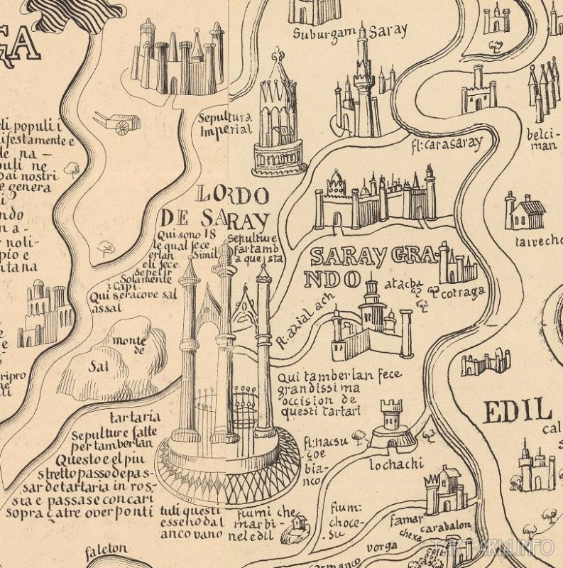 Вот 18 гробниц, которые Тамерлан построил аналогично этой; и там были похоронены только вожди Русское ханство Бату со столицей Сарай; ЧФР. Миланези в РАМУСИО, т. 3, с. 646.