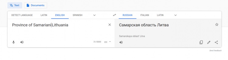 Интересно, что если вбить в гугл-переводчике «Province of Samariani Lithuania» получим вот что