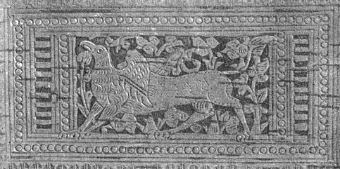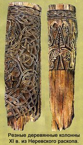 В Новгороде в XI веке грифа вырезали на деревянных колоннах, примерно в это же время в районе Сургута изображали на медальонах. В Вологде его вырезали на бересте.