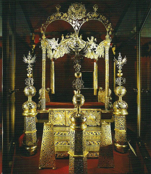 Последнее изготовленное изображение грифона на царских вещах перед долгим перерывом до середины XIX века найдено на двойном троне, который был изготовлен для царей Ивана и Петра Алексеевичей.