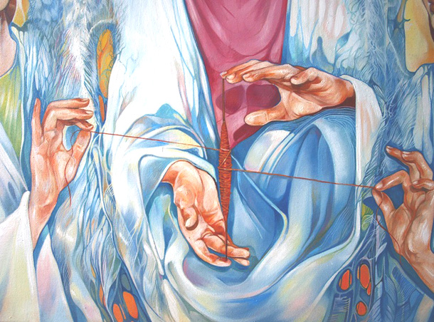 Богинью судьбы, семейного счастья и плодородия у славян была Макошь (Велесыня). Макошь или, как ее иногда называли, Великая Ткачиха, держит в руках полотно мира, на котором из нитей-жизней она сплетает замысловатые узоры. Макошь может в любую секунду оборвать любую нить или изменить ход ее движения.