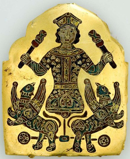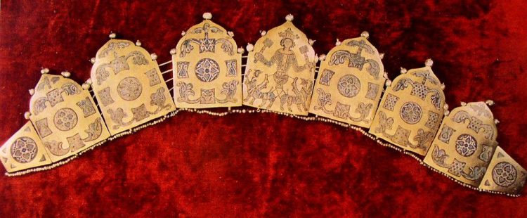 А теперь на медальончик того же содержания, найденный в Крыму, и диадему XII века из Сахновки (Украина). И откуда такое почитание Македонского?