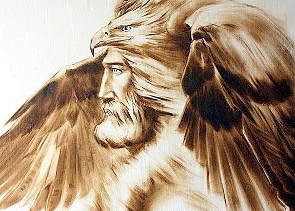 Орел – птица Громовержца Перуна. Сам могучий Громовержец Перун может обращаться орлом и летать по небу, высматривая скрытых недругов и открытых врагов, для того, чтобы жестоко расправиться с ними. Орел – Царь всех птиц, уступает размерами только грифу. Острый взор, острый изогнутый клюв, острые изогнутые когти и гордо посаженая голова напоминают нам, что перед нами находится настоящая царская порода. Орел с радостью выполняет любые поручения Бога Перуна и служит у него посыльным. В случае возникновения военных действий, орел разносит по войскам приказы своего главного полководца – Перуна. А так как Орел является Царем надо всеми птицами, то именно ему принадлежит власть над всеми птичьими войсками. Орлы и соколы, грифы и вороны, совы и филины готовы положить свою жизнь за своего Царя. При особой необходимости Царь-Орел может носить на своей спине Громовержца Перуна. Свою добычу и своих врагов орел хватает когтями в воздухе, не оставляя им ни одного шанса на спасение. Царь-Орел получил от Перуна волшебную способность, поражать свою жертву на расстоянии, бросив на нее один свой взгляд. Орел – птица Яви, и поэтому все Навьи птицы в ужасе разлетаются перед ним, освобождая ему свое место. Сын Бога Перуна – Ярило-Солнце любит забавляться с орлом и позволяет ему кружиться в небесной вышине, под самыми лучами обжигающего светила.