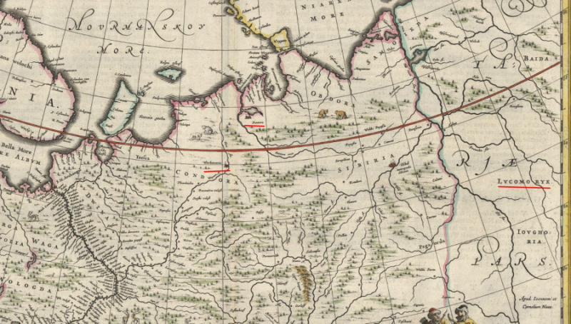 Здесь справа Тартария отделена по Оби. И опять мы видим Лукоморье: