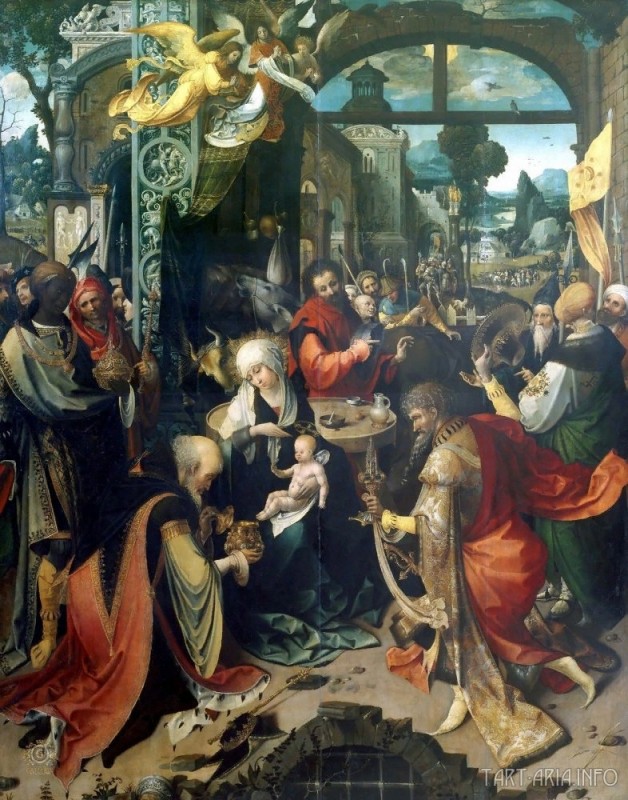 Все четыре картины демонстрируют один сюжет: рождение Иисуса и о некая делегация мудрецов/королей, что прибыли на данное мероприятие с Востока с целью вручить некие дары (интерпретаций данного события довольно много, так что я изложил самые основные детали). Мы не будем касаться вопроса правдивости данной истории и других тонкостей, связанных с религией. На данный момент нам интересны лишь изображённые символы и их принадлежность. Давайте на какое-то время представим, что мы не знаем сюжета данных картин, и будем смотреть лишь на то, что на них нарисовано.