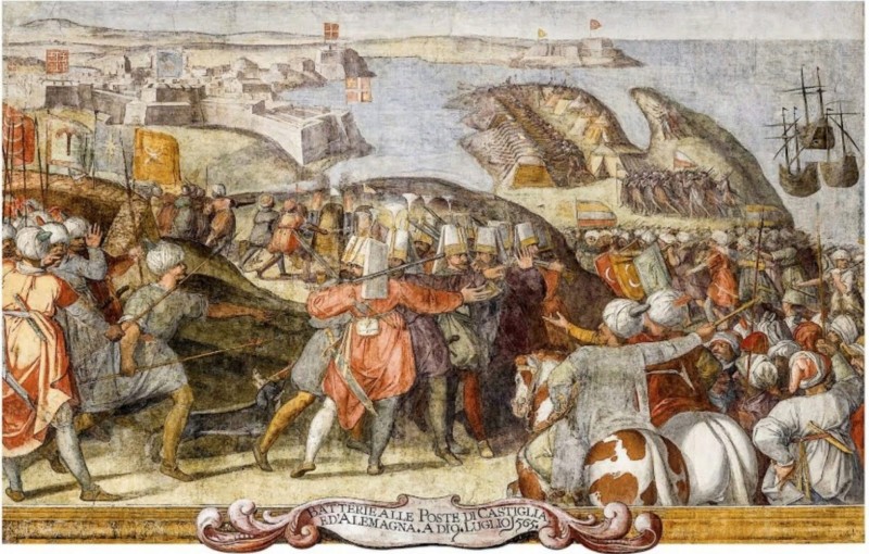 Осада Мальты в 1566 году (фреска Mattia Perez d'Aleccio).