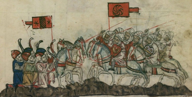 Интересный у них символ на правом флаге, не так ли? Этот же символ можно увидеть на одной из иллюстраций, взятой из «Chronicle of John Skylitzes» (Греческий историк 11 века). Описание к иллюстрации говорит, что на ней изображён захват Сирийского города Эдесса Византийской армией и последующая контр-атака со стороны Арабов: