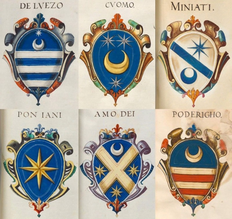 Данные гербы взяты из серии книг об Итальянских гербах 16 века. Серия состоит из 15 книг. Вот ссылка: https://opacplus.bsb-muenchen.de/title/BV020849371