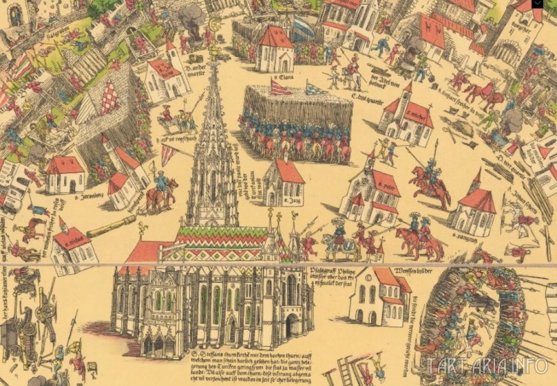 Под Турками здесь понимается Османская империя. Всего они осаждали город дважды – первый раз в 1529, а второй раз в 1683. Обе попытки захватить город провалились.