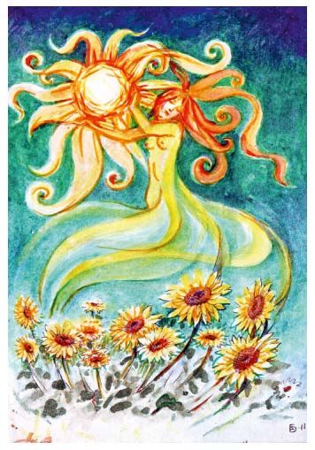 ОБРАЗ ЖИЗНИ: Солнце(Хорс) ревнует Денницу к Ясну Месяцу и ни в какую не позволяет им встречаться. И Денница подчиняется, он предвещает восход солнца, но как только видит солнечный лик на небе, то тает в его жарких-то лучах. А вот ночью Денница светит ярко-ярко, ярче всех звезд, старается, помогает Месяцу.