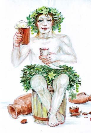 Интересно, что представляли его слегка пьяным-полусонным, практически обнаженным, укрытым лишь листьями хмеля (пропил, очевидно, все что было). Ни к чему хорошему дружба с ним не приводила. Но все равно, на хмельных пирушках славу ему воздавали.