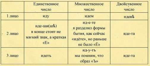Если в советской школе, когда вы начинали изучать русский язык или родную речь, кто в те времена учился, начинали с имён существительных, то древлеславенская всегда начинала с глагола. И чтобы запомнить основу речи для детей была, как бы, придумана считалочка: