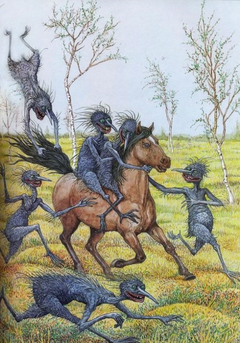 ВРАГИ ДОМОВОГО: Водяной да Леший, Если в дом пытаются проникнуть Злыдни, то Домовой с ними изо всех сил борется.