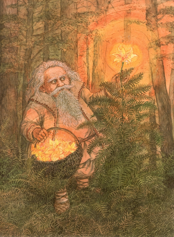 ЗАНЯТИЕ — Ну какое у дедка может быть занятие в Купальскую ночь, окромя как «папараць-кветку» поклоны бить? Ищет он цветок папоротника. Видимо, знает он слово тайное, что поможет ему клады открыть неведомые. И до зарезу ему волшебный цветок нужен.