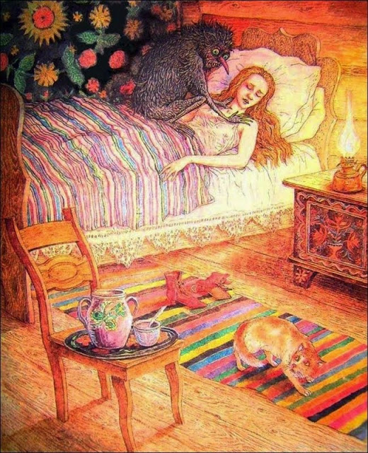 ДЕЯТЕЛЬНОСТЬ: Нападают в основном на новорожденных детей и не дают им спать. Чуют дом, где есть колыбель, проникают через окно или дверь и истязают ребёнка. Разносят детские болезни — бессоницу и плач.