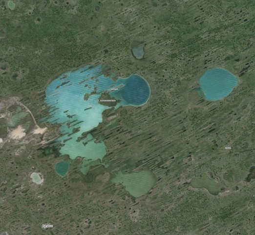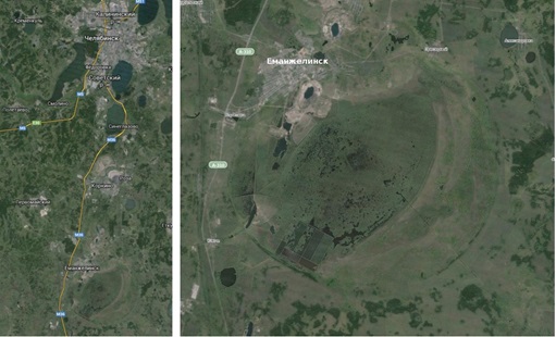 Если же двигаться на запад, в район Омска, Кургана и Челябинска, то там мы тоже найдём следы метеоритной бомбардировки, но они уже выглядят несколько по-другому.