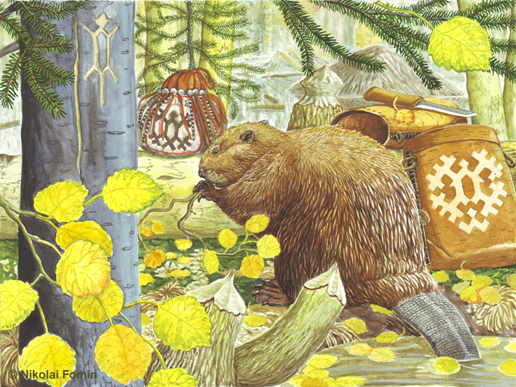 ОСОБЕННОСТИ. Работягу бобра уважали за хитрость и мудрость в хозяйственных делах. Из-за способности жить на поверхности, а работать под водой животным приписывалась связь между мирами живых и умерших.
