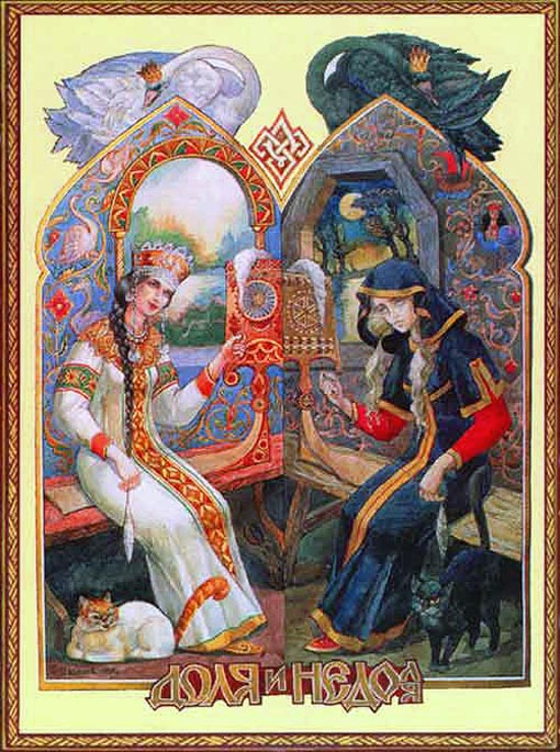 ДОЛЯ и НЕДОЛЯ — девы судьбы — две сестрицы, Доля (Сряшта, Встреча, Счастье) и Недоля (Несряшта, Злосчастье) — счастье и несчастье, судьба и несудьба, удача и неудача.