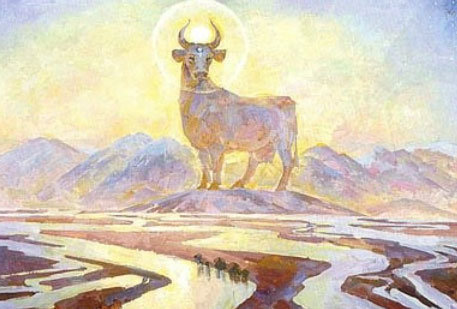 Богородица Зимун, будучи Богиней-Охранительницей Священных Небесных коров, умела перевоплощаться в Небесную корову, чтобы проследить, кто из ее Богов-сыновей балует и не дает Священным животным мирно пастись на просторных лугах Сварги Пречистой, а загоняет их пастись в Небесный Вырий-Сад или на темные пустоши, лежащие возле Рубежа, разделяющего Светлые и Темные Чертоги.