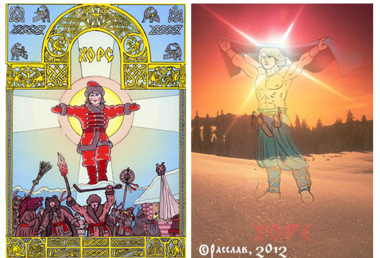 ИМЯ: изначально сдлово «Хорс» имеет корень «хор», обозначает «круг» или «окружность», что, впрочем, так же отражается его явную связь с круглым солнечным диском.